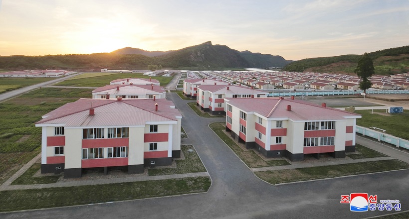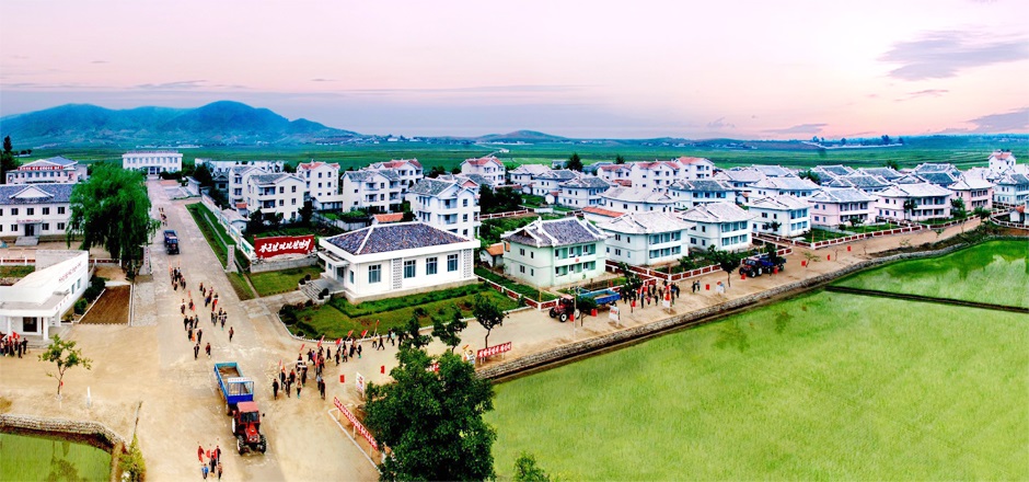 朝鮮の中部ファンへ北道*3サリウォン市*4にも桃源郷を誇るミゴク村があります。碁盤のように並んだ田んぼや果物の木がいっぱいの山の麓に広がる瀟洒なつくりの農村住宅。ミゴク里*5の人たちは金正日総書記の配慮で都会に劣らぬ生活をしている、社会主義文化農村だと言っています。