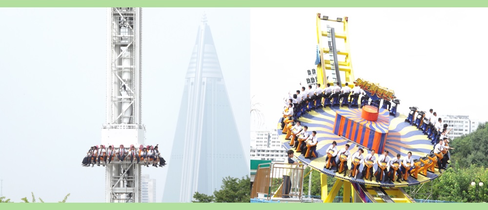 ピョンヤンの風光明媚なモラン峰*11の麓にあるケソン青年公園*12遊園地からも市民の笑い声が高らかに響き渡っています。