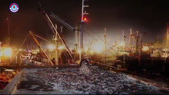 漁港に大漁の船の汽笛