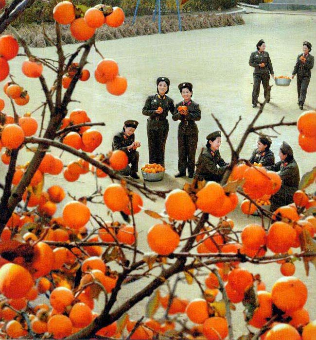 チュチェ86(1997)年11月24日、総書記は約束を守って訪ねてきました。夢を見るようで挨拶もろくに上げずにいる女性の軍人たちをやさしく眺めていた総書記は、2年前の約束を守ることになったと言いました。この日、総書記は兵舎の周辺に植えた柿の木を見て、この中隊は柿の木の中隊だと言いました。その時から女性の海岸砲兵中隊は「柿の木の中隊」として知られました。