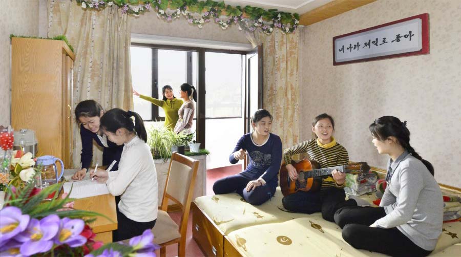 すべての条件が揃っている労働者の寮で娘たちは、何の不便もなく生活し、労働の喜びを味わっています。