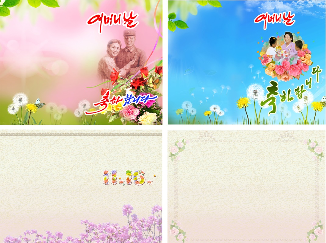 ご覧のように1つ1つのデザインが内容だけでなく、芸術的にも完璧な作品です。母の日の祝賀状、これには女性尊重の朝鮮の真面目がそのまま表れています。敬愛する最高指導者金正恩委員長がこれらのデザインを高く評価しました。