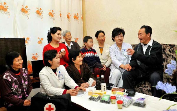 無料治療制のおかげで、朝鮮人民は無病長寿を謳歌し、幸せに暮らしています。