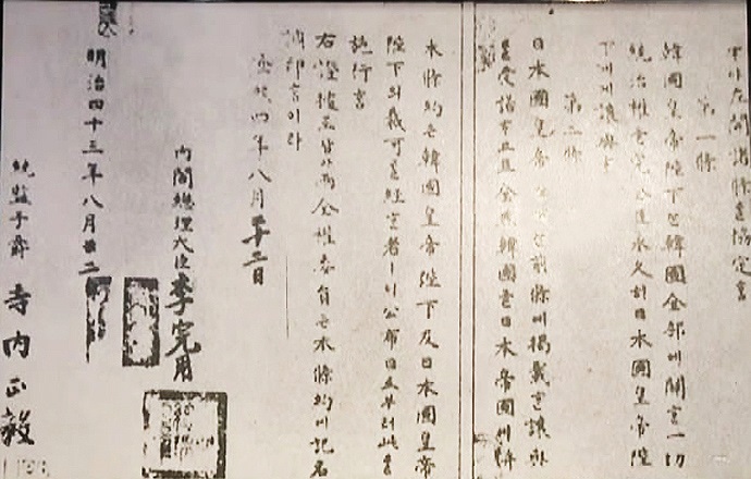日帝はすでに1905年に「乙巳5条約」を、1907年に「丁未7条約」を捏造し、朝鮮封建王朝の外交権と内政権を奪い取りました。これを踏まえて朝鮮占領を完全に「合法化」するために捏造したのが「韓日併合条約」です。
