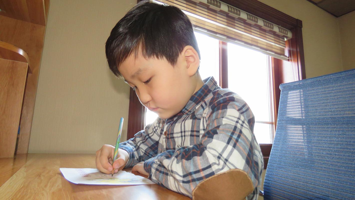 元日の朝のキムさんの楽しみと言えば、年賀状を書くことです。
