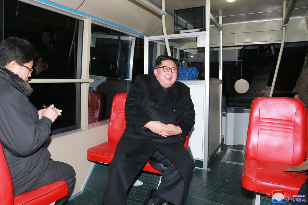 「2018年2月4日の深夜、私たちは敬愛する金正恩総書記とともに、新型のトロリーバスの試運転を行いました。この日、総書記が一番関心を持ったのはトロリーバスが市民に便利なのか、市民へのサービスはどうなっているかということでした。私たちはバスをつくるとき、運転席と客席を分離させました。総書記は運転席と客席を隔てたガラスを見て、このガラスをなくした方が、トロリーバスを利用する市民と運転手がもっと親しくなり、それだけ市民の便宜をさらに図れるだろう、運転手がトロリーバスを利用する市民の心理と要求をよく知って、サービス精神ももっと強く発揮するだろうと言いました。そして窓のそばに付いている保護用の取っ手を見て、椅子にかけるとき、客に不便を与えるところに設置されていると指摘しました。総書記の教えは市民の便宜を最大限図るための人民愛溢れるものでした」