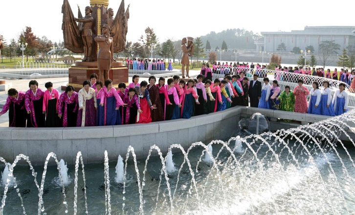 その後、工場の設備が更新され、毎年、人民経済計画を指標別に上回って達成しています。ニョンビョン地区の自慢であるヤク山に咲き乱れるつつじの模様を施したヤク山ブランドの段だら縞の絹地やヤクサントンデのすそを流れるクリョン川のように穏やかな模様の綺麗な絹地が量産されています。総書記の熱い人民愛がそのまま絹地に込められているようです。絹のチマチョゴリをまとった女性たちや段だら模様の民族衣装を着た可愛い子供たち、商店に一杯の絹地の布団を見るたびに、18年前のその日のことが思い起こされ、目頭が熱くなります。