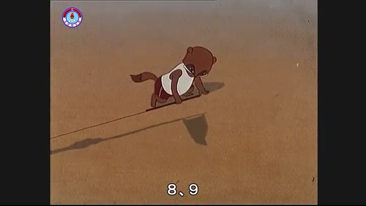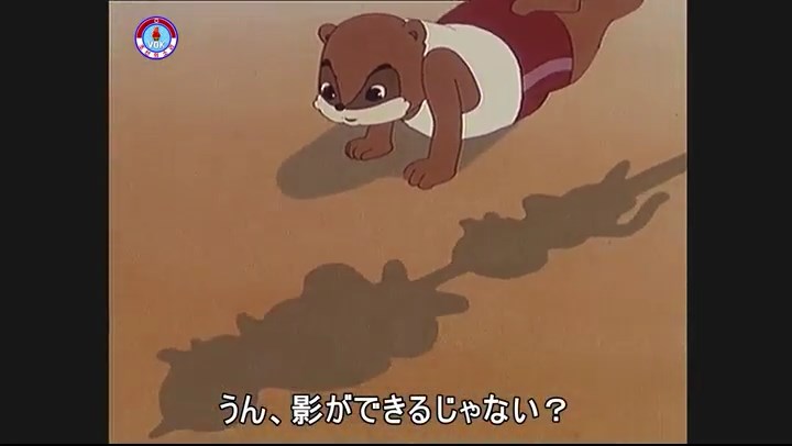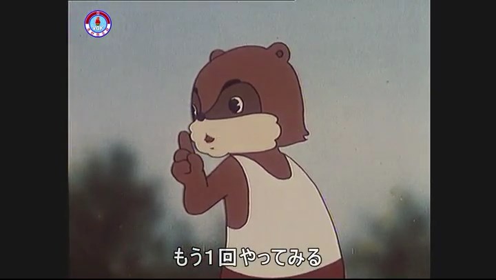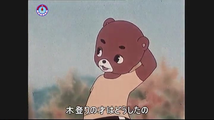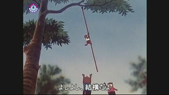 「あっ、パンツが脱げてる さあ」(※タヌキのパンツがずり落ちる描写。吊るされた竿(棒)を登る練習をしているが、落ちる)