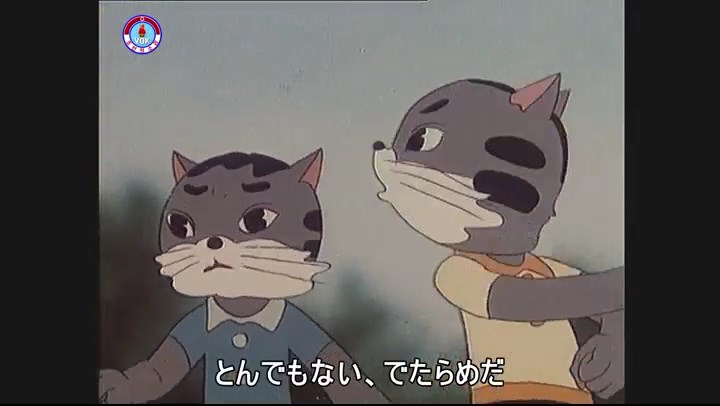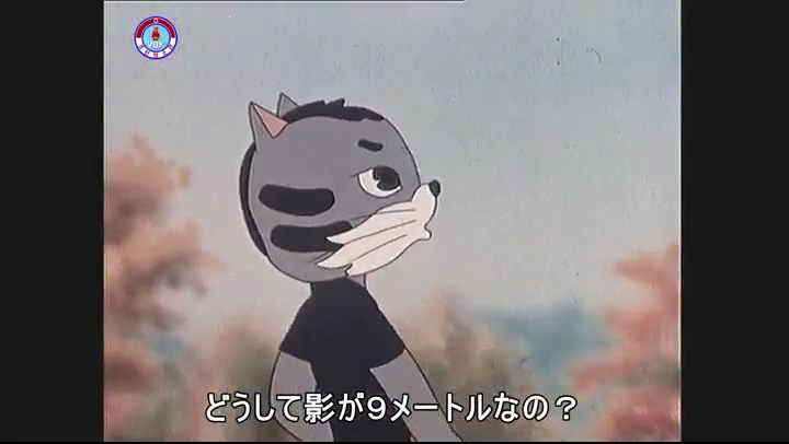 ※ネコ、竿のてっぺんに昇り測ろうとするが巻尺が外れている事に気づき下に降りる。