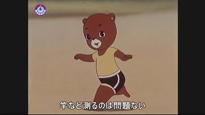 ※クマ、竿の下に引っ掛けていた巻尺の端を外そうとするが、ネコの巻尺の端も一緒に外してしまう