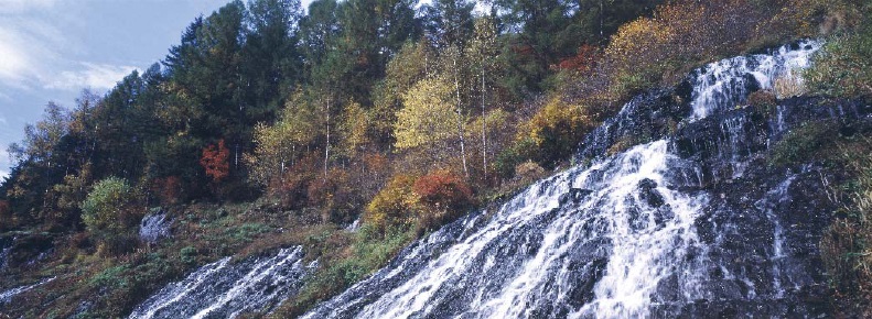 「リミョンスの滝は山の中腹の岩壁を突き抜けて流れ落ちます。今から100万年前、ペクトゥ山*8で火山が噴出した時、地下水が玄武岩の合間を経てこのように山の中腹から流れ落ちる自然そのものの滝を作りました。それでこの滝は一年中、変わることなく流れ落ちます。水の量が増えたり、減ったりせず、特に冬も凍らず流れ落ちます。滝水の温度はオールシーズン4度です。滝は季節が変わる度にそれなりの独特な景色で飾られます」