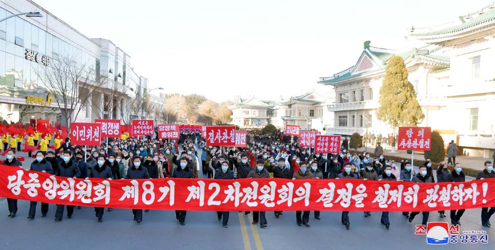 チュチェ110(2021)年1月5日から12日まで行われた朝鮮労働党第8回大会で、大会を働く大会、闘う大会、前進する大会にすることを明らかにし、新たな国家経済発展5ヵ年計画を発表しました。2月には党中央委員会第8期第2回総会を招集し、5ヵ年計画の初年度から実際の変化、実質的な進展を遂げるための具体的な対策を講じました。その後も、経済と人民生活の懸案解決のための対策を講じ、市、郡を強化し、人民生活を安定させるための会議が相次いで招集されました。