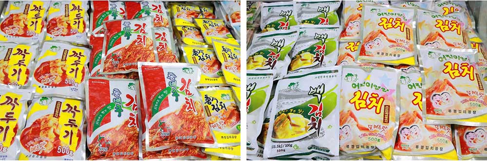 ピョンヤンの随所にリュギョン・キムチ工場で生産されるキムチの売り場がありますが、白菜のキムチ、大根の角切りのキムチ、白キムチなどこの工場の製品の需要はとても高いのです。リュギョン・キムチ工場は敬愛する金正恩総書記の発案と細やかな指導によって、キムチの工業化のモデル工場に建てられました。