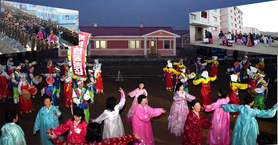 金正恩委員長は、新築される街と住宅の設計案も1つ1つ指導し、被害復旧を成功裏に行うための具体的な対策も取りました。こうして、被災地の人民に多くの生活必需品と食糧、食品はもちろん冬の薪まで供給され、子供たちはソンドウォン国際少年団キャンプ場*3で楽しいキャンプ生活を送りました。