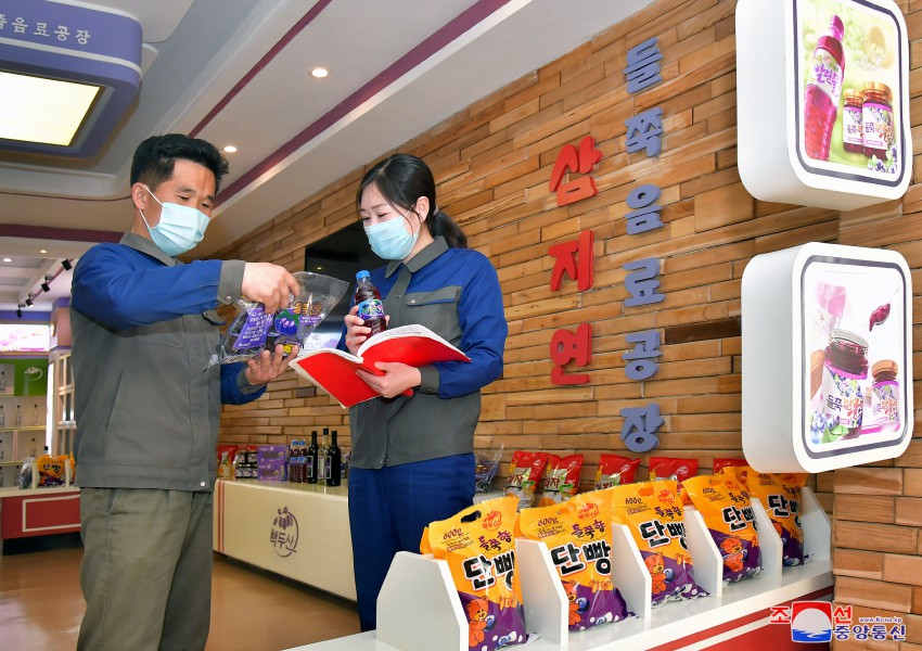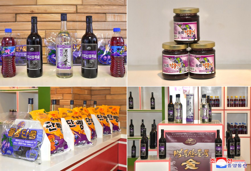 サムジヨン・ブルーベリー飲料工場では、環境の汚染がないペクトゥ山一帯で収穫したブルーベリーを基本の原料として、シロップ、酒、ようかん、ジャム、キャンデー、ビスケット、パン類など各種の加工品を生産していますが、その人気が上がっています。