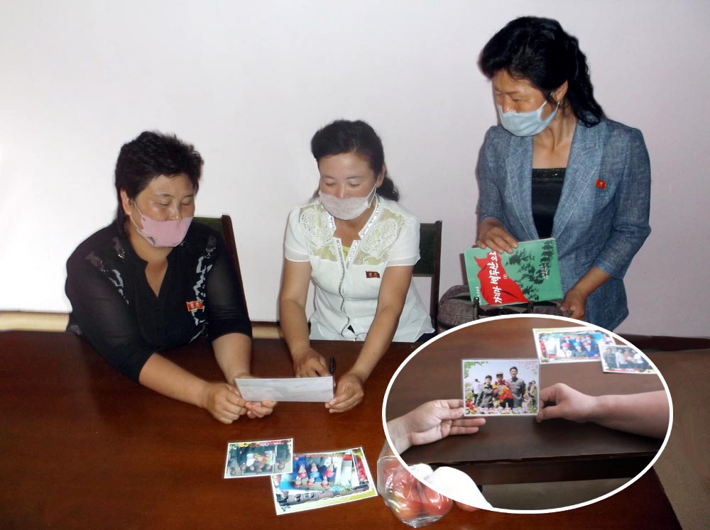 目の手術のため、キムさんが入院したときは、食品と補い薬を念入りで用意して見舞いに行き、1日も早く回復するよう真心を尽くしました。医師たちとチョンさんの真心によって眼帯を外すとき、本人はもとより、周りの人みなは感激を抑えきれずにいました。そのときから女性同盟員のみなが参戦老兵たちに真心を尽くしました。