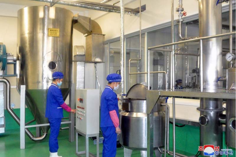 郡内の食品工場、製紙工場、日用品工場、アパレル工場がリニューアルされ、チュチェ111(2022)年6月に竣工しました。食品工場では、味噌や醤油と野生の果実のシロップ、ジャムなどを生産しています。