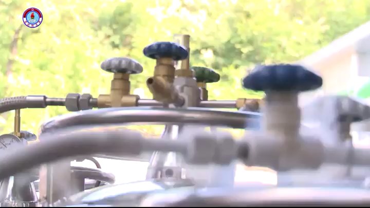 澄み切った空気の流れる鬱蒼とした森の中にある工場、一目で医療用酸素を生産する工場である事が分かります。ここ保健酸素工場では、木の葉から発する天然の酸素と同じ高純度の酸素を生産し、気体酸素だけでなく液化酸素も生産しています。