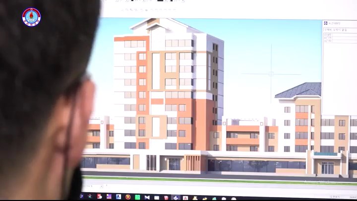 ここは白頭山建築研究院、共和国の建築の研究と創作のセンターです。これまで研究院の設計チームは国中のモニュメンタルな建築の完成に大いに寄与しました。