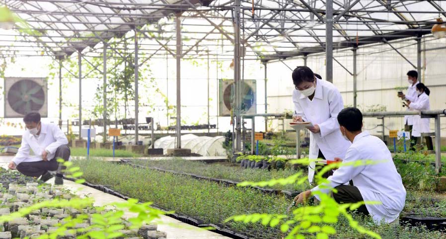 経済的で観賞価値のある良種の木を育種して広めるための研究を行っている森林研究院の森林植物工学研究所の人たちです。研究所ではこれまで野生の果実の特性を保存し、種子を改良するなど、産量と品種を増やすための研究を深めて多くの成果を収めました。