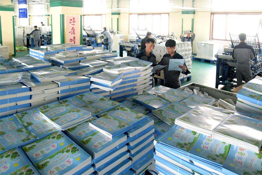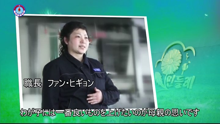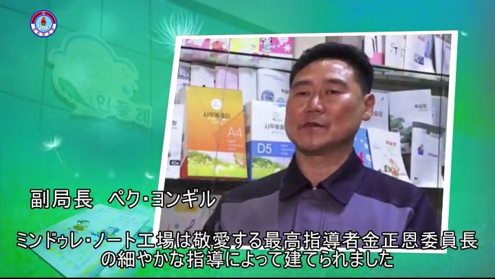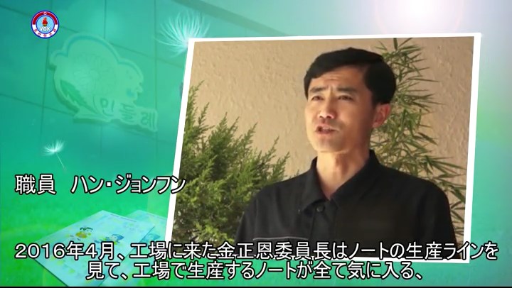「2016年4月、工場に来た金正恩委員長はノートの生産ラインを見て、工場で生産するノートが全て気に入る、紙も良質で製本も非の打ち所がない、表紙のデザインにも工夫を凝らしている、と重ね重ね満足の意を表しました。そして、工場の人たちに、わが子に本を綴ってあげる母親の思いで良質のノートを沢山生産して、子供たちと生徒たちに送ろうと言いました」