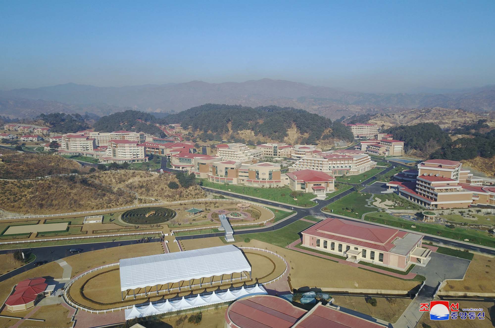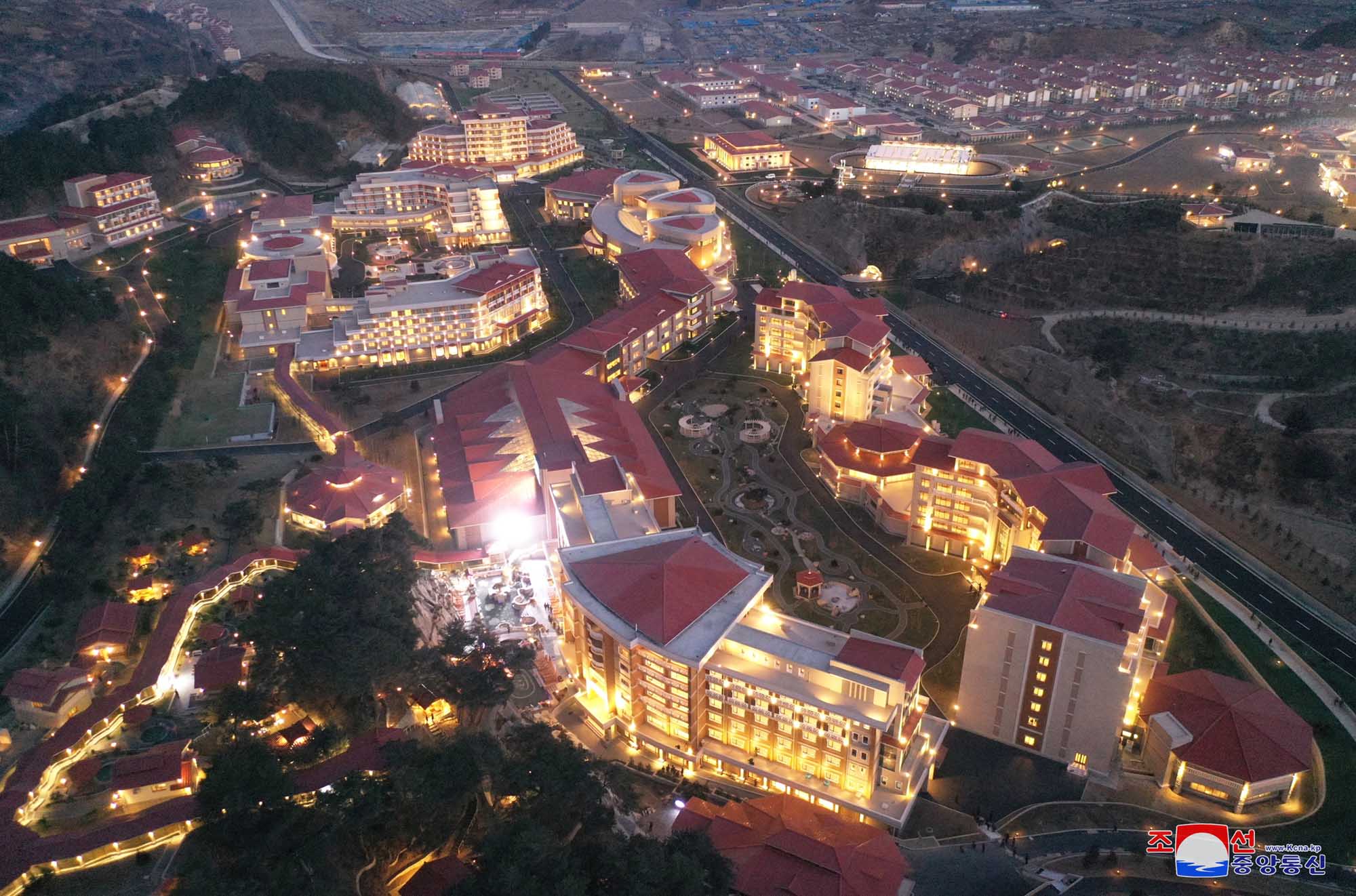 すっかり姿を一新したヤンドク郡の温泉地区、四季を通して白い湯煙が立ち込める湯治場には、総書記の人民のための献身の足跡が印されています。