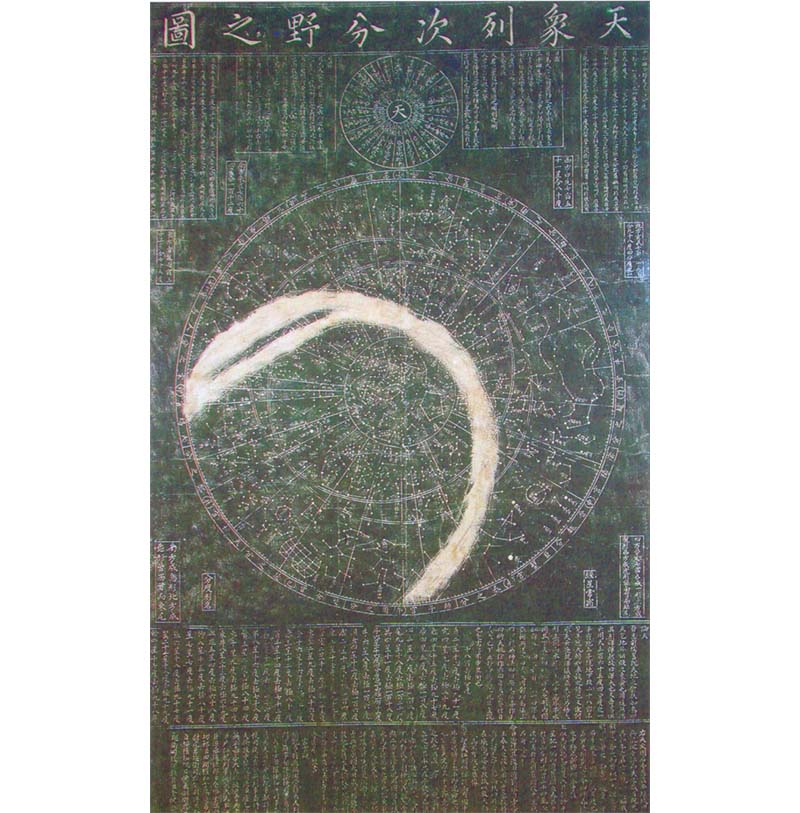 石刻天文図は当時、暦の編纂と天文観測で基礎的な資料として利用され、外来侵略者の侵入により流失しました。それが14世紀末にそのコピー版が発見されました。それに当時の天文学の実情に合わせて若干の修正を加えて作られたのが、今に伝えられる「天象列次分野の図」です。