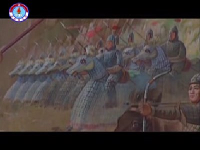 コグリョの強大さは、コグリョ人民の熱い愛国心、そして無敵の軍事力あってのものでした。コグリョの軍事力では騎兵が重視されていました。騎兵でも特色あるものが鎧を着せた馬と騎兵、鎧馬部隊(かいばぶたい)でした。