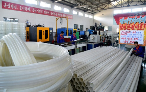 *1 楽浪戦傷栄誉軍人樹脂日用品工場 平壌市統一通りにある。敷地面積が1万3000余m2の同工場は、総合庁舎と生産建物、付属建物、文化・厚生施設からなっている。工場では、各種規格のプラスチック管、農業用ビニール・フィルム、食品包装材、使い捨て弁当容器とコップなどを生産している。また、様々な用途の瓶、果物箱と10〜100リットルのバケツ、樹脂水筒をはじめ樹脂容器も生産している。製品の生産は、ポリープロピレンとポリエチレンなどを原料としている。このような原料は、溶融と押出、膨張のような生産工程を経て良質の樹脂製品に完成される。需要者から好評を博している製品は、傷痍軍人によって生産されている。朝鮮では党と領袖、祖国と人民のために青春も生命も捧げて戦った傷痍軍人を大いに押し立て、彼らを社会的に敬っている。社会と集団のために自分を捧げることを当然の本分、義務としている彼らであるがゆえに、今日も兵士時代のように社会主義強盛国家建設のためのたたかいで輝かしい偉勲を立てている。(Nenara)