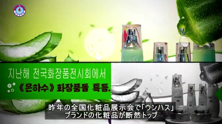「2019年11月の全国化粧品展示会で『ウンハス』ブランドの化粧品が特等に選ばれました。朝鮮の有名なケソン・コリョ・インサムと清潔な環境で育った天然のもののエキスを利用し液状の精油の乳化法で作られた老化防止化粧品、美白化粧品、保湿化粧品など、『ウンハス』ブランドの化粧品は効果が優れ、とくに女性の中で需要が日増しに増えています。最近、アジアとヨーロッパの権威ある地域経済機構が朝鮮の『ウンハス』ブランドの化粧品の品質を認証しました。多くの地域経済機構ではホームページを通じて『ウンハス』ブランドの化粧品を広く紹介し大量購入を勧めています