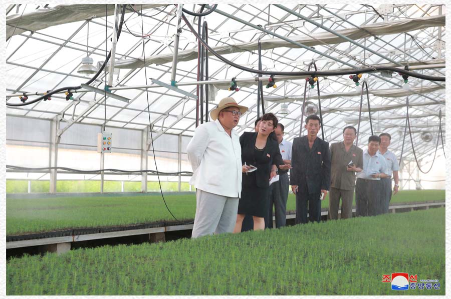 金正恩委員長はチュチェ107(2018)年7月、新設されたカンウォン道育苗場を訪れました。大規模な苗木の生産施設がまた1つ立派に造られたのが嬉しくて、金正恩委員長は喜びに満ちていました。育苗場の各所を見て、金正恩委員長は、苗木の生産の科学化の水準を高め、カンウォン道の気候風土に合う良種の苗木をより多く生産して供給することなどに触れました。