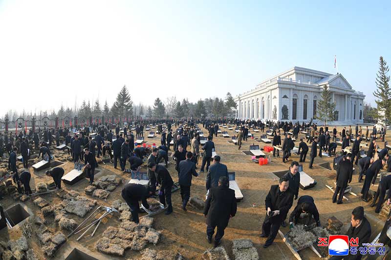 朝鮮労働党中央委員会の手配により、20日、海外軍事作戦戦闘偉勲記念館の英雄の墓地に党中央委員会と国防省の職員が芝を植えました。