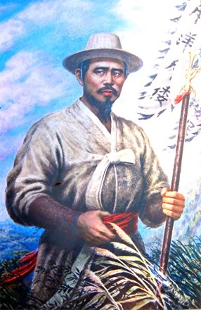 1894年2月、チョン・ボンジュンの指揮の下にチョンラ道のコブ地方の農民は灌漑用水に対する不当な税金徴収に反発して暴動を起こしましたが、これは全国を揺さぶる大規模な農民戦争に拡大しました。隊伍を整った農民軍は、チョンラ道の道都チョンジュにまで進出して、官軍を打ち破り、大勝利を収めました。
