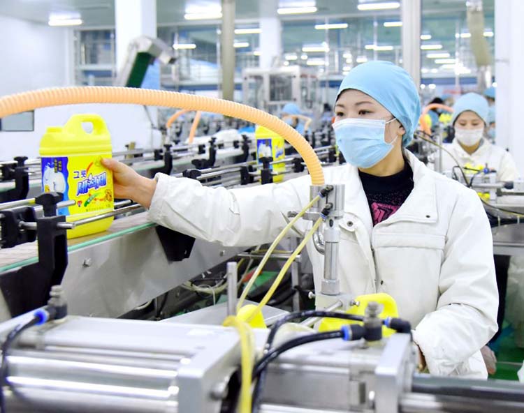 ピョンヤンのリョンアクサン石鹸工場で生産される液体石鹸と洗剤は、その用途と効能が様々で、使用者の好みにもぴったり合います。皮膚と繊維を傷つけず、主婦の便益を図る複数の衣服用液体石鹸と先端技術で得た生理的活性物質、天然香料などを入れたので皮膚が柔らかく、艶を出すだけでなく、爽やかな感じを与えるボディーソープなどなど。