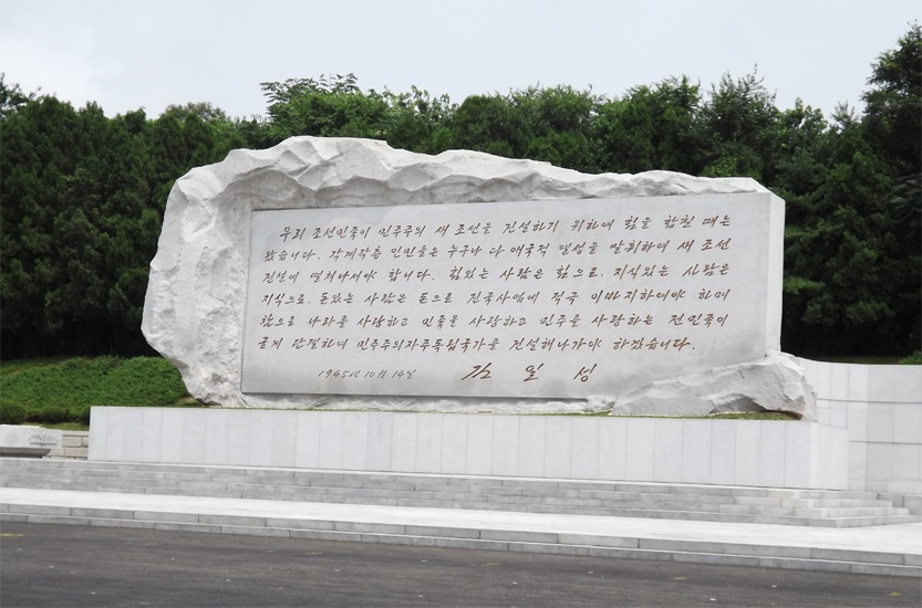 「金日成主席が国を取り戻したのは、生死のふちをさまよっていた朝鮮人民を、自分の運命の真の主人に押し立てた民族の一番の喜びごとでした。この時から朝鮮人民は奪われたすべての権利を取り戻し、国と自分の運命の主人として、社会生活のあらゆる分野で自主的で創造的な生活を営み、世界で光を失っていた朝鮮は堂々たる自主独立国となりました。主席が導いた抗日革命戦争は、抑圧される植民地の人民大衆が、自らの革命勢力に依拠して帝国主義侵略勢力を打ち倒し、史上初めて植民地民族解放闘争の新時代を開きました。まさに金日成主席は20年にわたる抗日対戦を勝利へと導いて、奪われた国を取り戻し、民族再生の春をもたらした解放の恩人です」