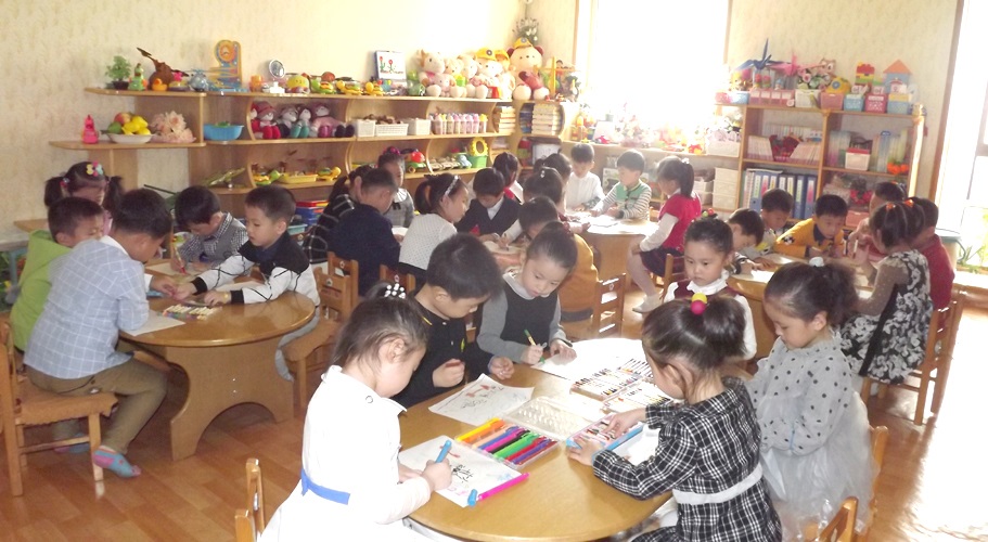 ピョンヤンのキョンサン幼稚園はのちの世代を大事にする敬愛する最高指導者金正恩委員長の熱い温情こもるところです。建築面積1240平方メートル、延べ建築面積5000平方メートルの幼稚園には、教室、専科室、リズムホール、公演準備室、寝室、講堂、食堂など一切のものが揃い、就学前の教育機関としては完璧と言えます。