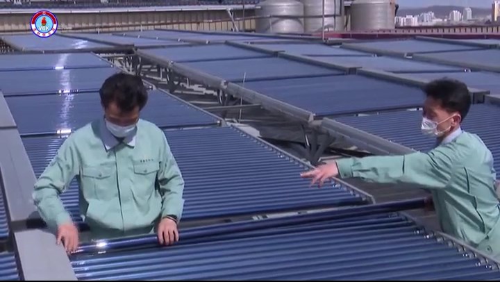 モランボン区域*2食品総合商店では自力で100個以上のソーラーパネルによる発電システムを構築して実益を得ており、残った電力を国家電力網に入れています。