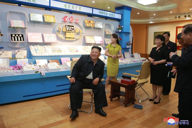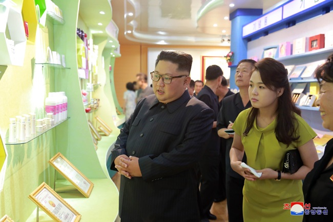 2018年6月30日ニュース抜粋敬愛する最高指導者金正恩委員長がシンイジュ化粧品工場を現地指導しました朝鮮労働党委員長で朝鮮民主主義人民共和国国務委員会委員長、朝鮮人民軍最高司令官の労働党と国家、軍隊の最高指導者金正恩同志が、リ・ソルチュ女史と共にシンイジュ化粧品工場を現地指導しました。 朝鮮労働党中央委員会のアン・ジョンス、ファン・ビョンソ、ハン・グァンサン、キム・ソンナム、チョ・ヨンウォン、オ・イルチョン、ファン・ヨンチョルの各同志が同行しました。 金正恩委員長は、工場の人たちと挨拶を交わし、「ポムヒャンギ」ラベルの化粧品で名だたるシンイジュ化粧品工場に前々から一度来て見たかったが、今やっと訪ねて来た、工場で最近もよい成果をあげているとの話を聞いて時間を割いてやって来たと暖かく述べました。 金正恩委員長は革命事績教育室と沿革紹介室を見ました。委員長は、深い感慨の中、革命事績教育室に展示された意義深い写真に見入り、共和国の化粧品工業の端を開いた偉大な金日成主席と、景観に恵まれ、水の清い南シンイジュ地区の山のふもとに工場の用地を新たに見立て、将来の発展のためのしっかりした土台を築いた偉大な金正日総書記の正しい導きと格別な関心の中、工場が誇らしい発展の道のりを歩んできたことについて熱く述べました。そして、金日成主席と金正日総書記が種をまいて育て、譲り渡した尊い富を子々孫々輝かすべきだとし、従業員みなが工場に残された主席と総書記の不滅の業績を胸に刻んで共和国を代表する世界的レベルの化粧品をもっと多く生産して化粧品工業の新たな全盛期を開いて行くべきだと述べました。 金正恩委員長は工場の各所を長いこと見て回り、化粧品の生産と工場の近代化の状況をつぶさに把握しました。 金正恩委員長は、工場で短期間に自動化、無菌化、無塵化が実現したローションやヘア・ローションなど各種化粧品の生産工程を近代的に構築したことを評価しました。また、製品の衛生安全性を徹底させるため生産現場に衛生通過室を新たに設置し、エアコンを設置して生産工程の無菌化、無塵化を完璧に実現したばかりか、作業現場の床と壁をエポキシ樹脂とアクリル樹脂の塗料で仕上げて、化粧品を生産する工場らしく生産現場が清潔だと述べました。そして、工場で先端を突破するため努め、生産の指揮及び技術工程の管理、経営管理をIT化し、生産と経営活動を科学的に行える統合生産システムを高いレベルで構築したことを評価しました。また、配合、熟成、注入、包装、容器消毒、浄水などの各工程を近代的につくり、原料の投入から出荷に至るまでの全工程の無人化、自動化、ライン化を実現し、樹脂容器の生産設備と接着ラベルの印刷設備を補充して容器を多様に生産していることを評価しました。さらに、新設された洗浄及び液体化粧品の生産工程を見て、原料、資材と製品の運搬に必要な無人運搬車をはじめ多くの設備を工場の技術者、熟練工が自力で設計、製作し、または道内の機械工場で製作したとの話を満足げに聞きました。 金正恩委員長は、ヘアローションと*1治療用化粧品など数十種の新製品を開発し、量産できる能力をきずいたことは大したことだ、シンイジュ化粧品工場でこれまで人知れず多くの仕事をやってのけた、うわさにたがわず、さすが、歴史が長く、主席と総書記の足跡が残された工場らしい、工場の労働者の粘り強い精神と勤勉な仕事振りに感服する、満足、大満足だ、と述べました。 金正恩委員長は、シンイジュ化粧品工場は、国の軽工業の発展に大いに役立っている工場だとし、工場の従業員が集団的技術革新に取り組み、有名製品をもっと多く開発するため尽力し、人民が好み、選好する良質の化粧品を量産していることを再三、高く評価しました。そして、シンイジュ化粧品工場とピョンヤン化粧品工場をはじめ国中の化粧品工場で種類が数え切れないほど多種多様な化粧品が先を競って量産され、女性たちがその選択に困る今の現実を主席と総書記に一度でも見てもらえばどんなによいだろう、主席と総書記の一生の労苦が宿る貴重な種が実り、人民がその実益を得るたびに、主席と総書記が偲ばれてならないと切々と述べました。 金正恩委員長は、シンイジュ化粧品工場では、これまでの成果におごらず、より高い目標に向けて引き続き飛躍すべきだ、「ポムヒャンギ」ラベルの化粧品が人民の好評を博し、需要が高いからとして、絶対、自画自賛せず、「ウンハス」ラベルの化粧品をはじめわが国の化粧品と世界的に有名な化粧品を比べて分析し、工場の製品の質を新たに更新し、需要者の好みと年齢、体質の特性に合わせて品種を増やすための研究を絶えず深めるべきだ、化粧品の安全性と品質、特定の効果を正確に保証するための科学的な品質管理システムを徹底させ、厳しく遵守すべきだ、必要な分析設備を整え、新たな実験方法と技術