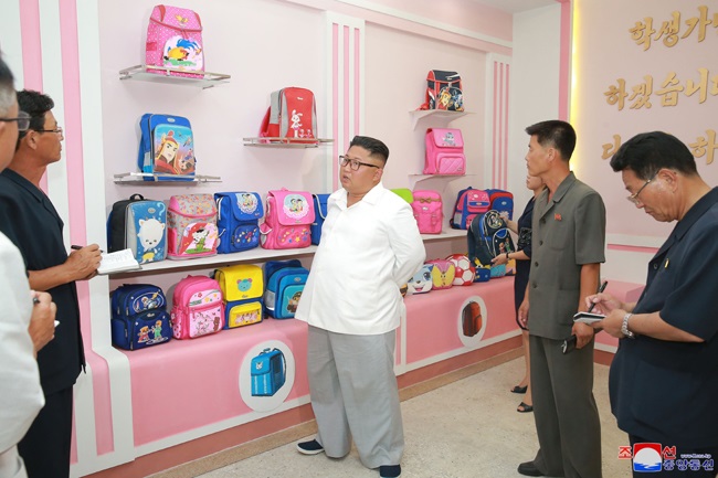 金正恩委員長は工場の各所で生徒、学生用鞄をどう生産するかつぶさに見聞きしました。委員長は、各道に数十万個の鞄が生産できる物質・技術的土台が充分築かれただけに、今はその質を高めることに力を集中すべきだ、各道の鞄工場で生産した製品の質の評価をきちんとして要求度を強めて国中の子供と生徒に供給される鞄の質を同じくすべきだ、中央で鞄の生地とファスナー、テープ、合成皮革、金具類と樹脂加工品など鞄生産用の原料と資材を計画化し、責任を持ってまかなって各道の鞄工場で生産を正常化するようにすべきだ、子供と生徒に国産の良質のノートと鞄、学用品、制服を持たせて子供のときから自分の物を大事にする愛国心を植えつけるのが労働党の意図だ、全国の鞄工場の従業員は一つの鞄を作ってもわが子に作ってあげる母親の心で真心を尽くし、心血を注ぐべきだ、従業員の技術機能を高めることを先行させ、生産工程ごとに技術規定を遵守し、鞄工場の間に技術交流を行って互いに学び合い、英知を集め合って品質向上で飛躍を起こすべきだ、と述べました。