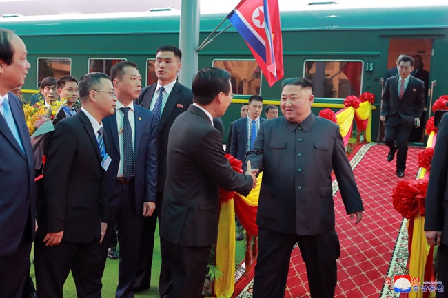 現地時間で午前8時15分、金正恩委員長を乗せた専用列車が中華人民共和国の各省、都市を経由してベトナムの国境駅であるトンダン駅に到着しました。