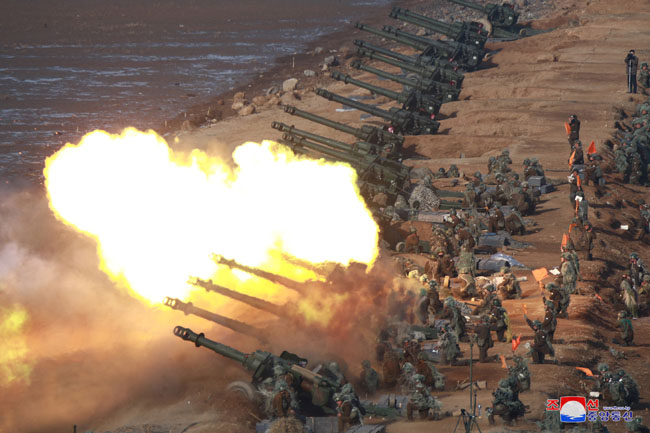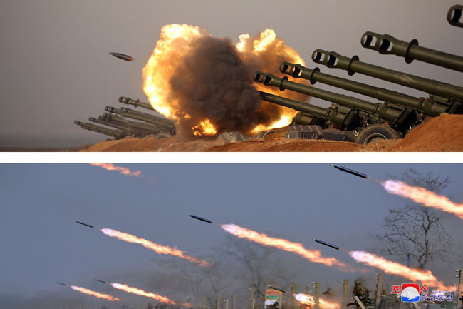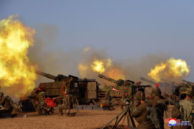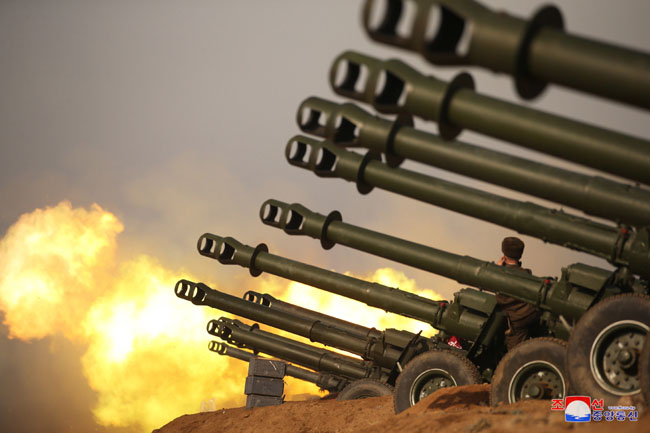 金正恩委員長は、西部前線の砲兵たち、分けても第3軍団の砲兵がとても見事な腕だ、あたかも、狙撃兵器で標的の点数に当てるようだと高く評価しました。