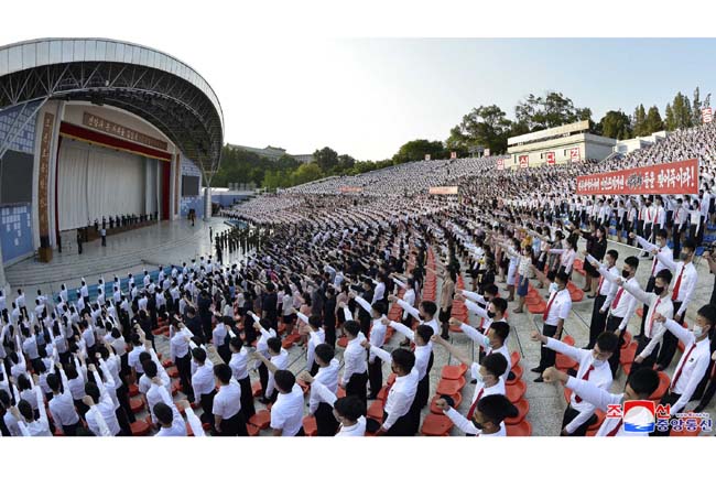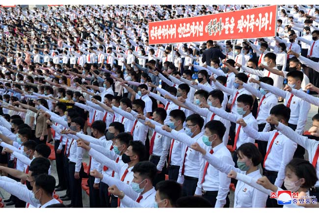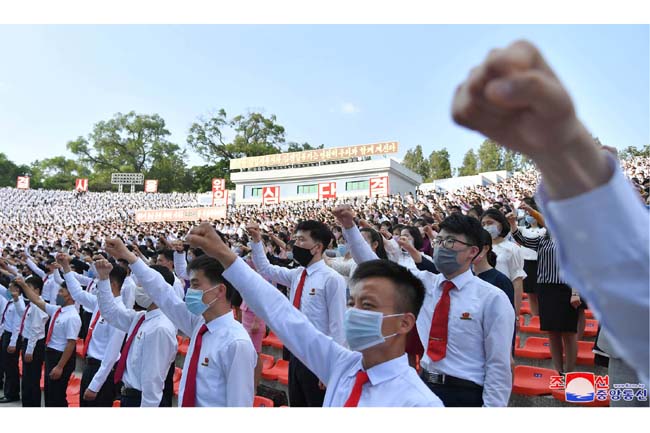 南朝鮮当局と「脱北者」の人間の屑らの反共和国敵対行為を糾弾する青年学生の抗議集会が6日、ピョンヤン市青年公園野外劇場で行われました。