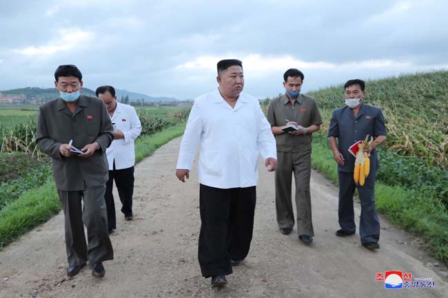 敬愛する最高指導者金正恩委員長が台風に見舞われたファンヘ南道の被災地域でその被害状況を把握しました