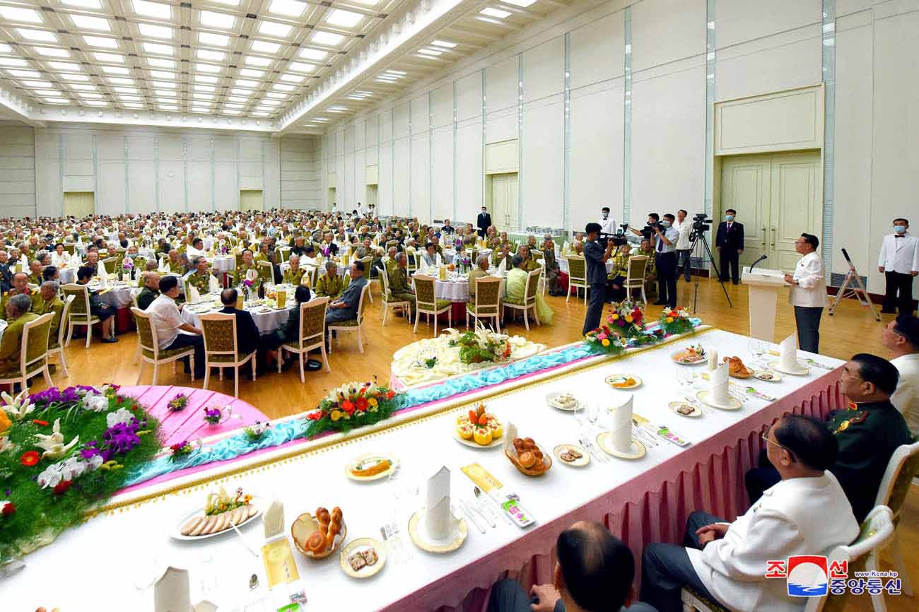 第7回全国老兵大会の参加者のための宴会が、27日、ピョンヤンの人民文化宮殿とオクリュ館、チョンリュ館、ピョンヤン冷麺食堂などのレストランで行われました。