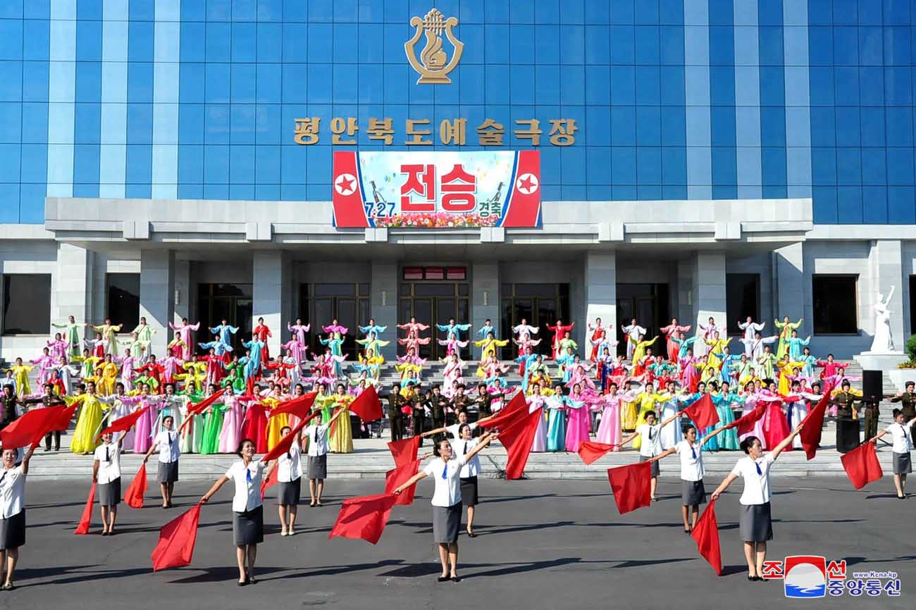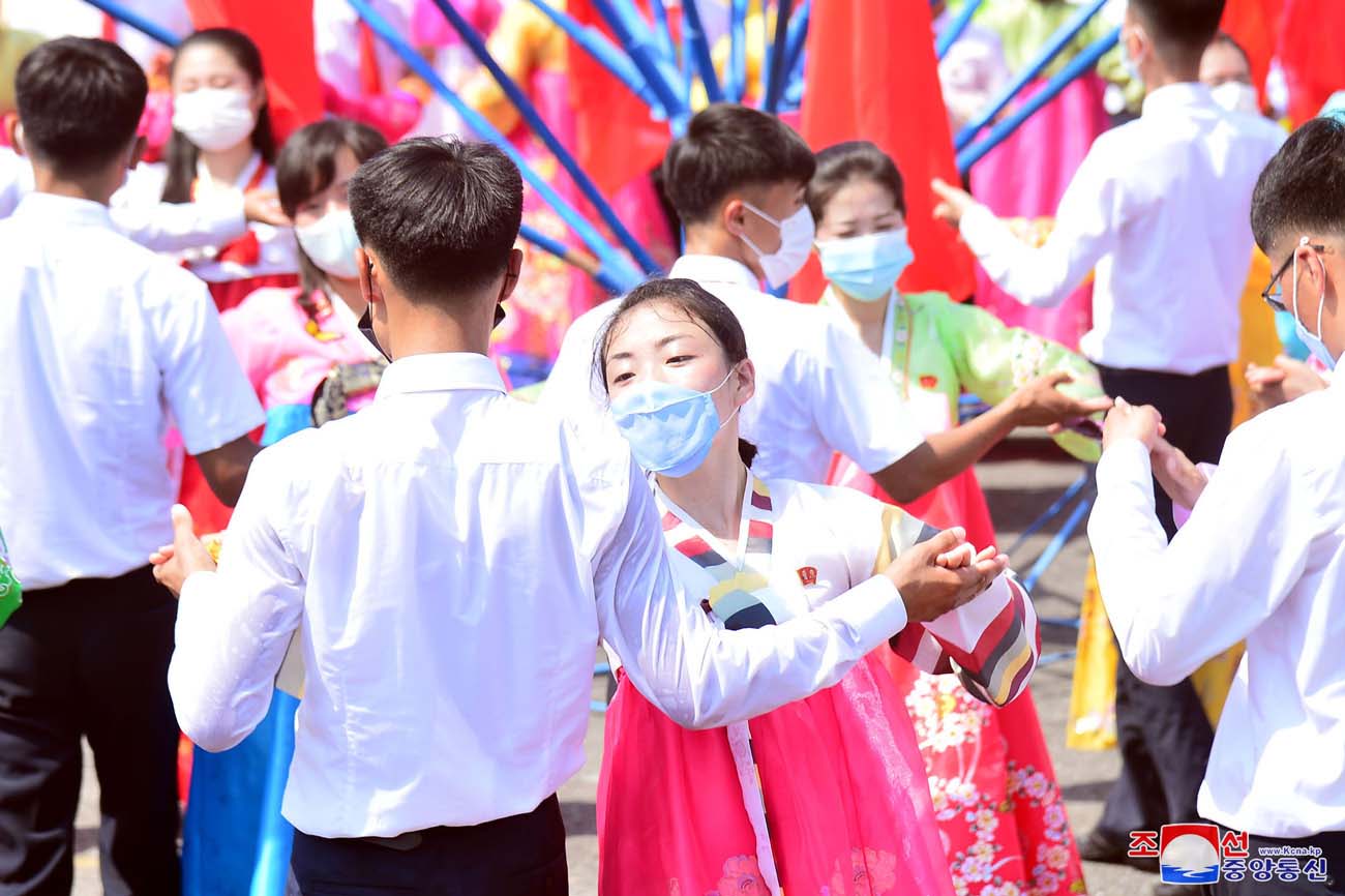 凱旋門、ピョンヤン体育館の広場などピョンヤンの各舞踏会場で、参加者は「われらの7月27日」、「勝利は代を継いで」などの歌に合わせて軽快な踊りの輪を広げました。