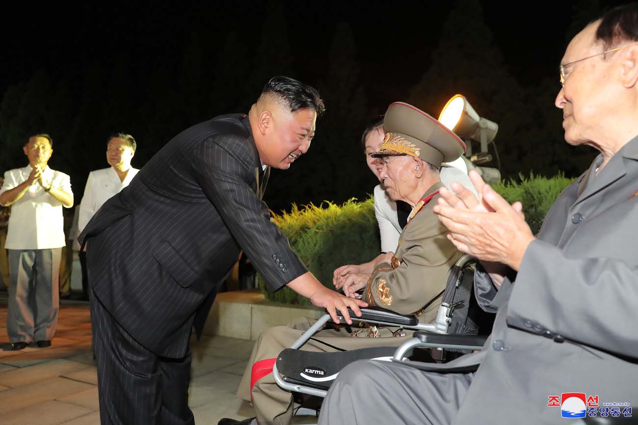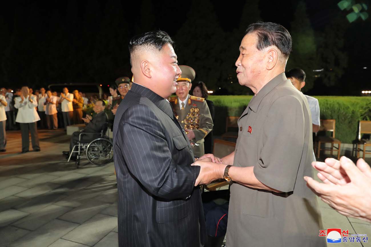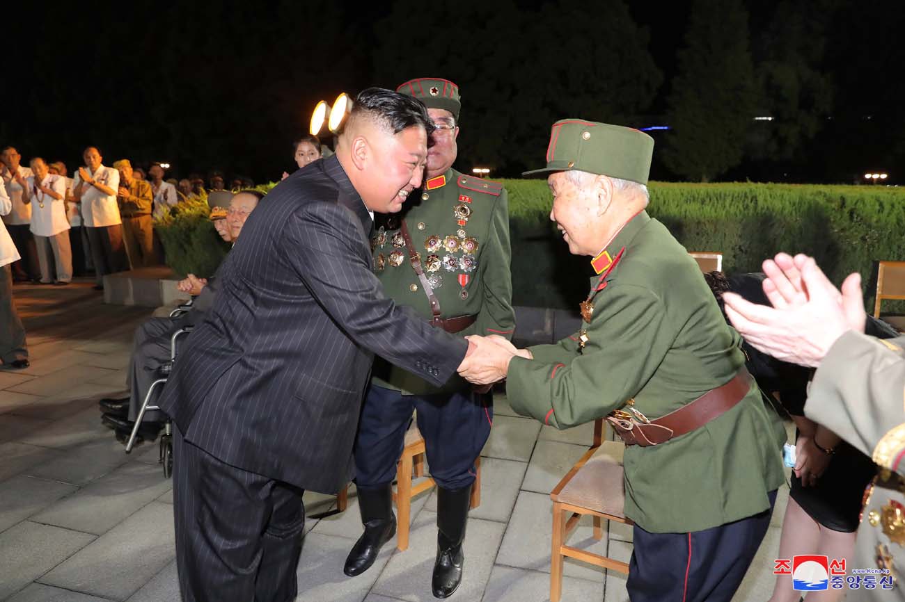 会場に着いた金正恩総書記は、党と政府、武力機関の重要ポストに長い間勤めた参戦老兵たちに会って一人一人手を取り、暖かい挨拶を交わしました。