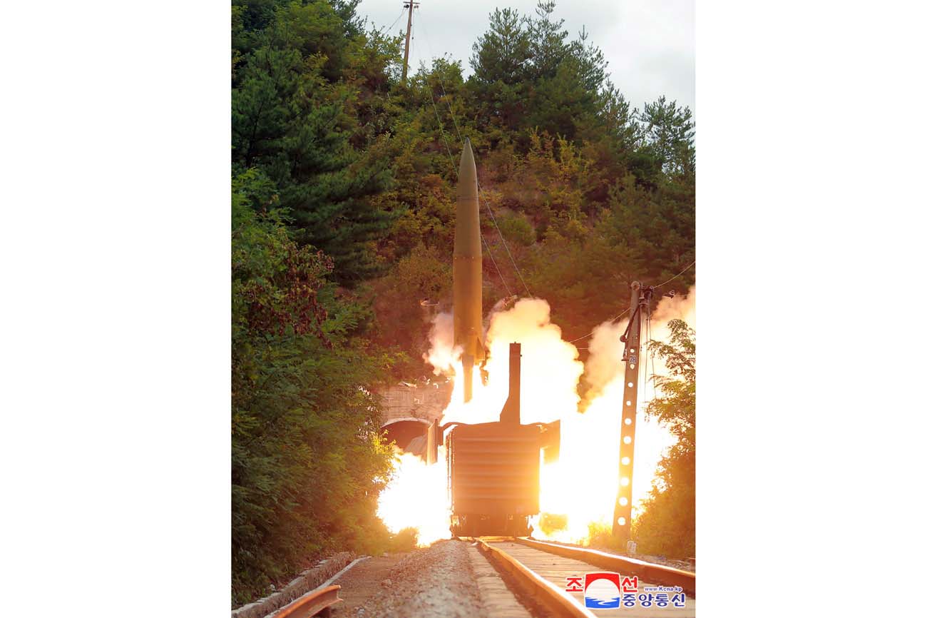 鉄道機動ミサイル連隊は鉄道機動ミサイルシステム運営の規範と行動の手順通りに緊急に機動し展開して、火力任務通りに朝鮮東海上の800キロメートル水域に設定された標的を正確に打撃しました。