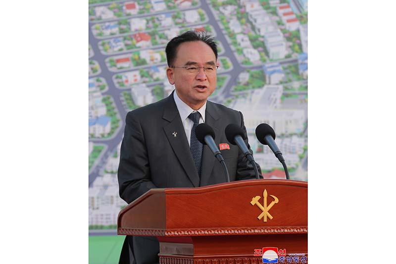 リョンポ・ハウス農場の竣工式で朝鮮労働党中央委員会政治局常務委員会委員の党中央委員会チョ・ヨンウォン組織担当書記が竣工の辞を述べました