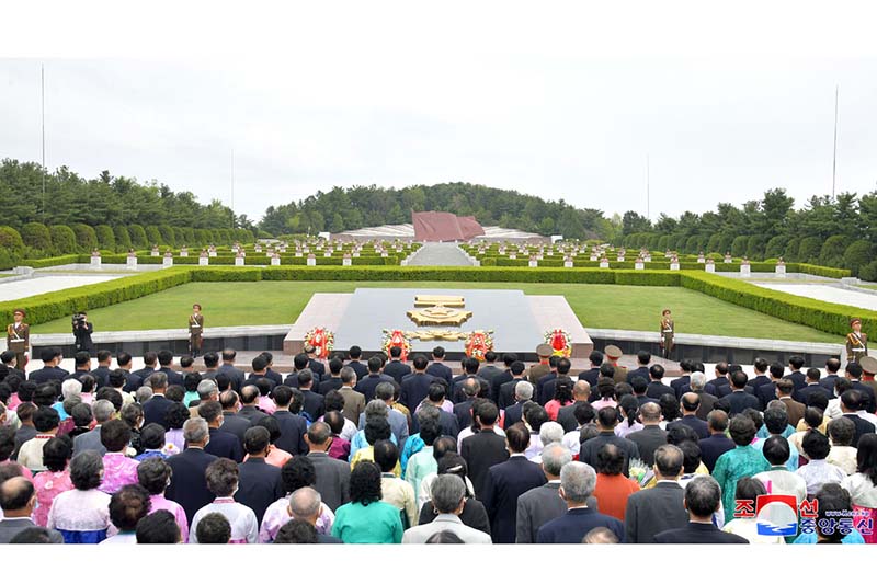 テソン山革命烈士陵と祖国解放戦争参戦烈士の墓地を大勢の人が訪れました。