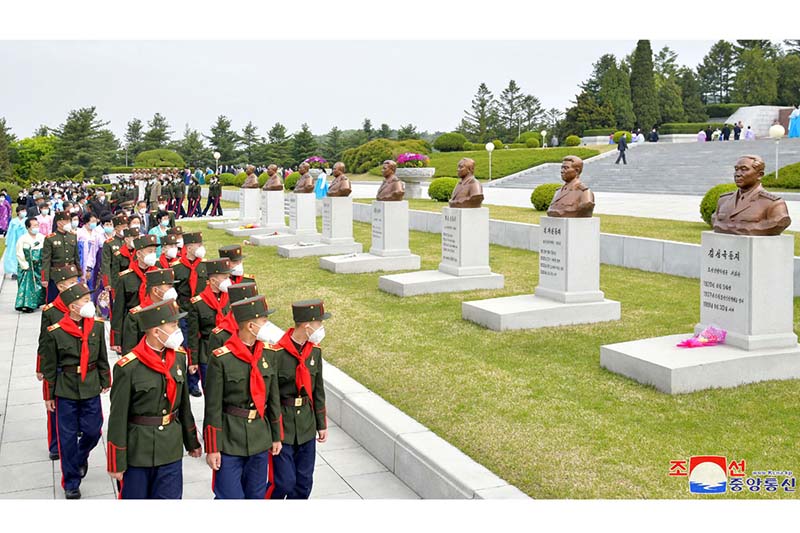 朝鮮人民革命軍創建91周年に際して、勤労者と青年学生が国の解放のために不滅の功績を残した抗日革命烈士たちが安置されているテソンサン革命烈士陵を引っ切り無しに訪れています。